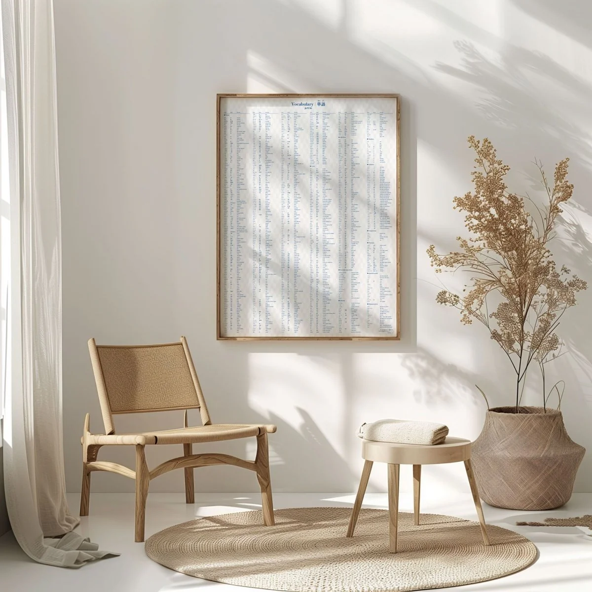 Stick it on the wall above your desk (or in your toilet, depending on where you spend the most time) and let the magic happen. Glance at it to learn a new word. Glance at it to refresh your memory. Glance at it during your coffee break instead of scrolling on Instagram.
